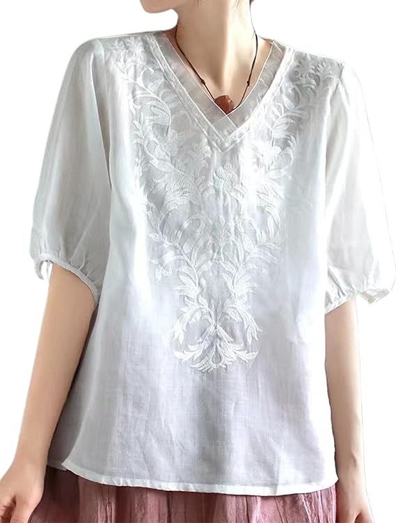 刺繍 Vネック トップス FA0032